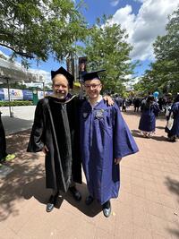 Aaron with Professor Mark Finkel at YU’s 2024 Commencement